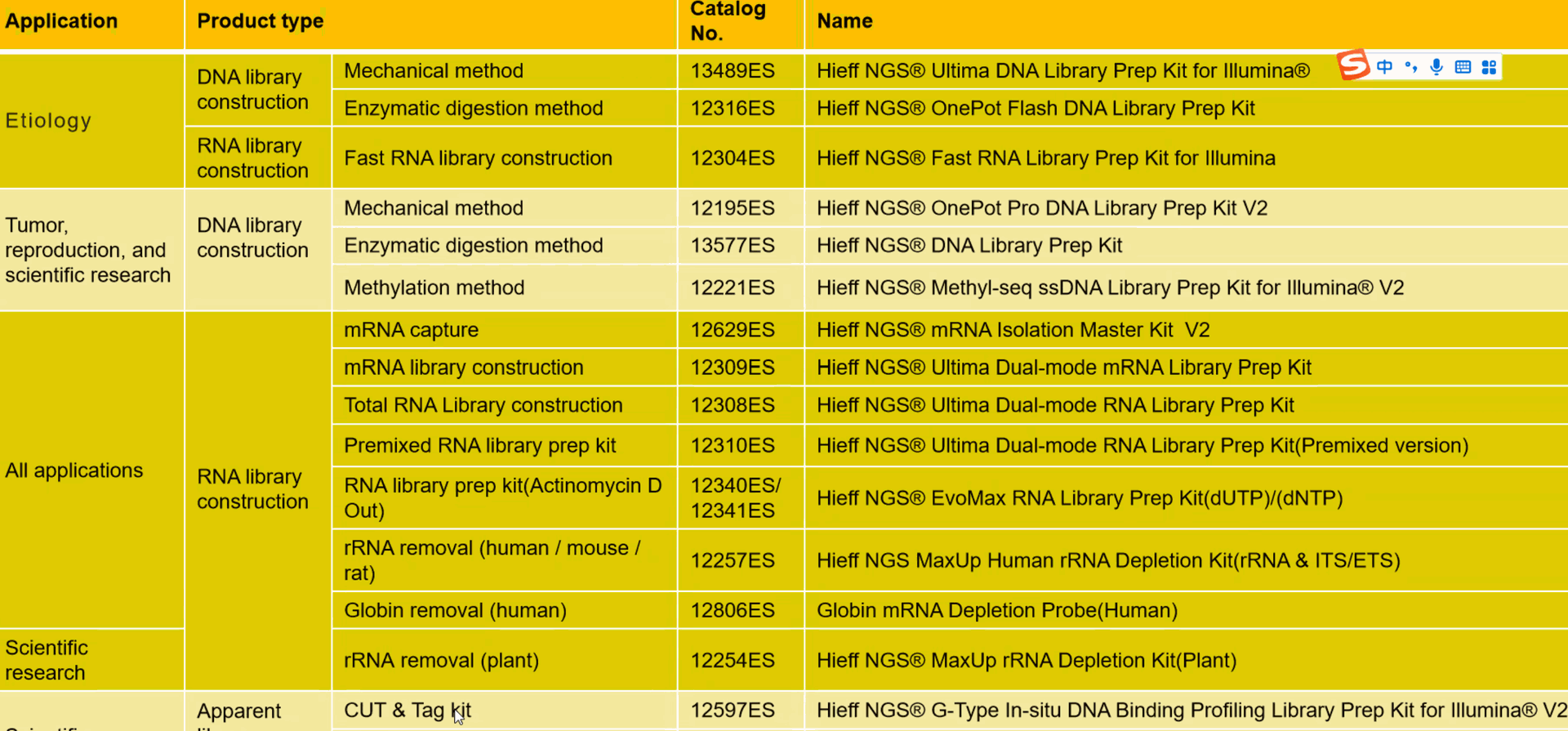 Available kits for NGS